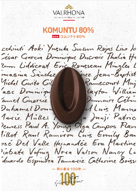 そして、その中のひとつ、昨年のヴァローナの創業100周年を記念して開発された、ブラック・チョコレート「コムントゥ80%」を数量限定で販売いたします。様々な産地のカカオが融合した力強いウッディーノートとほろ苦さが特徴で、ご家庭で作る今年のバレンタインチョコレートが特別なものになる逸品です。