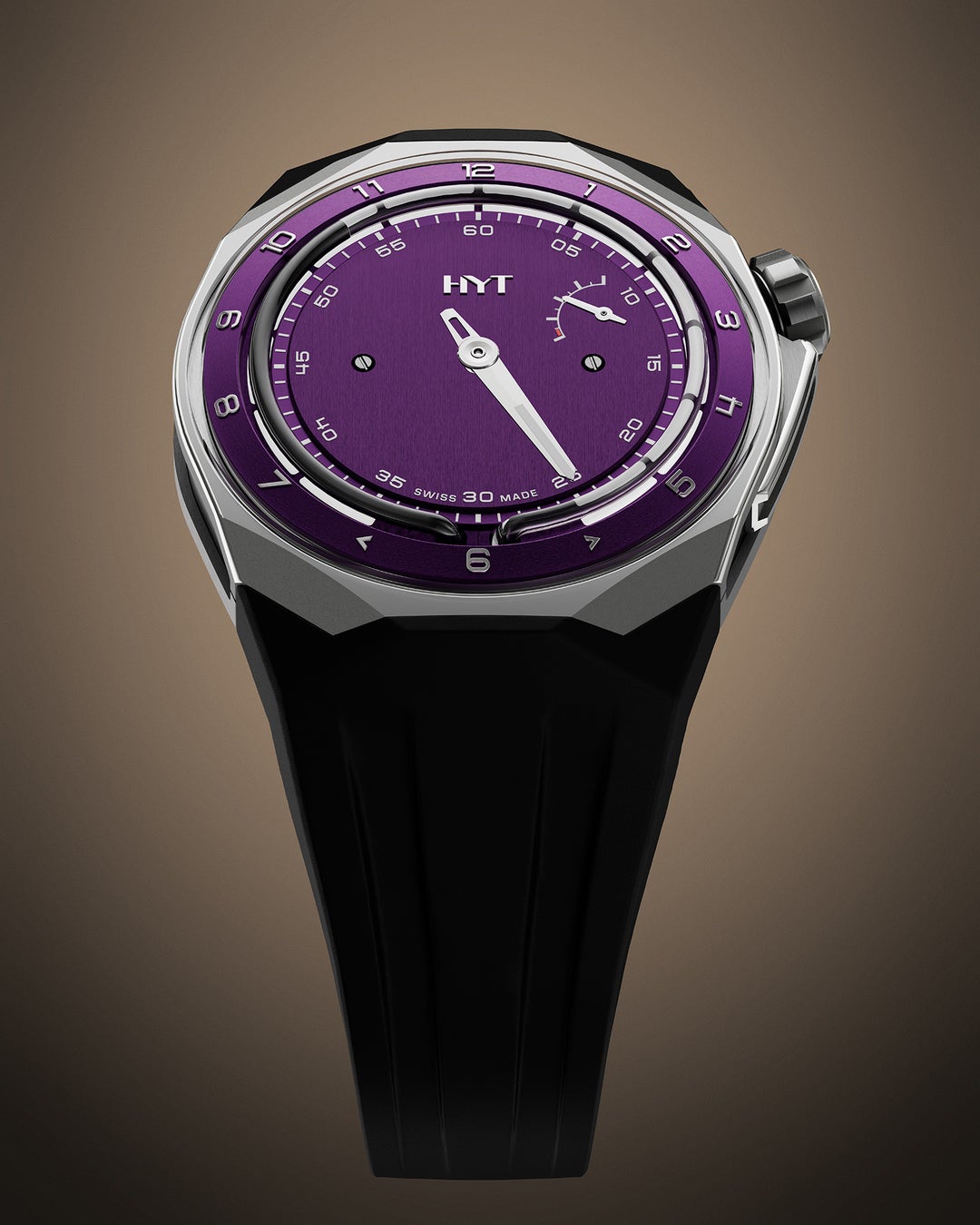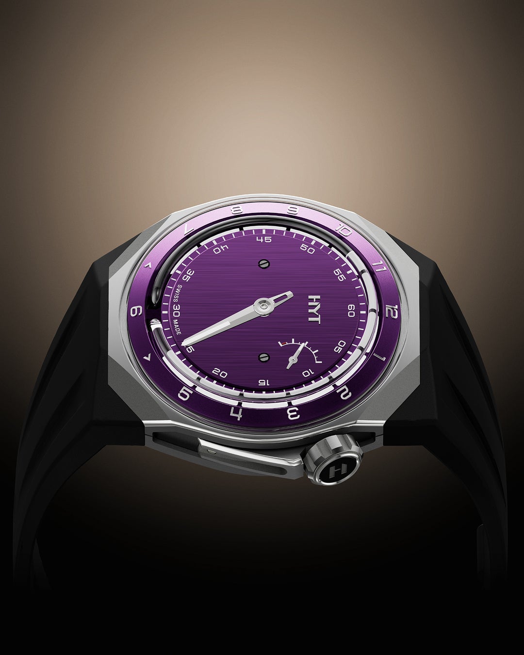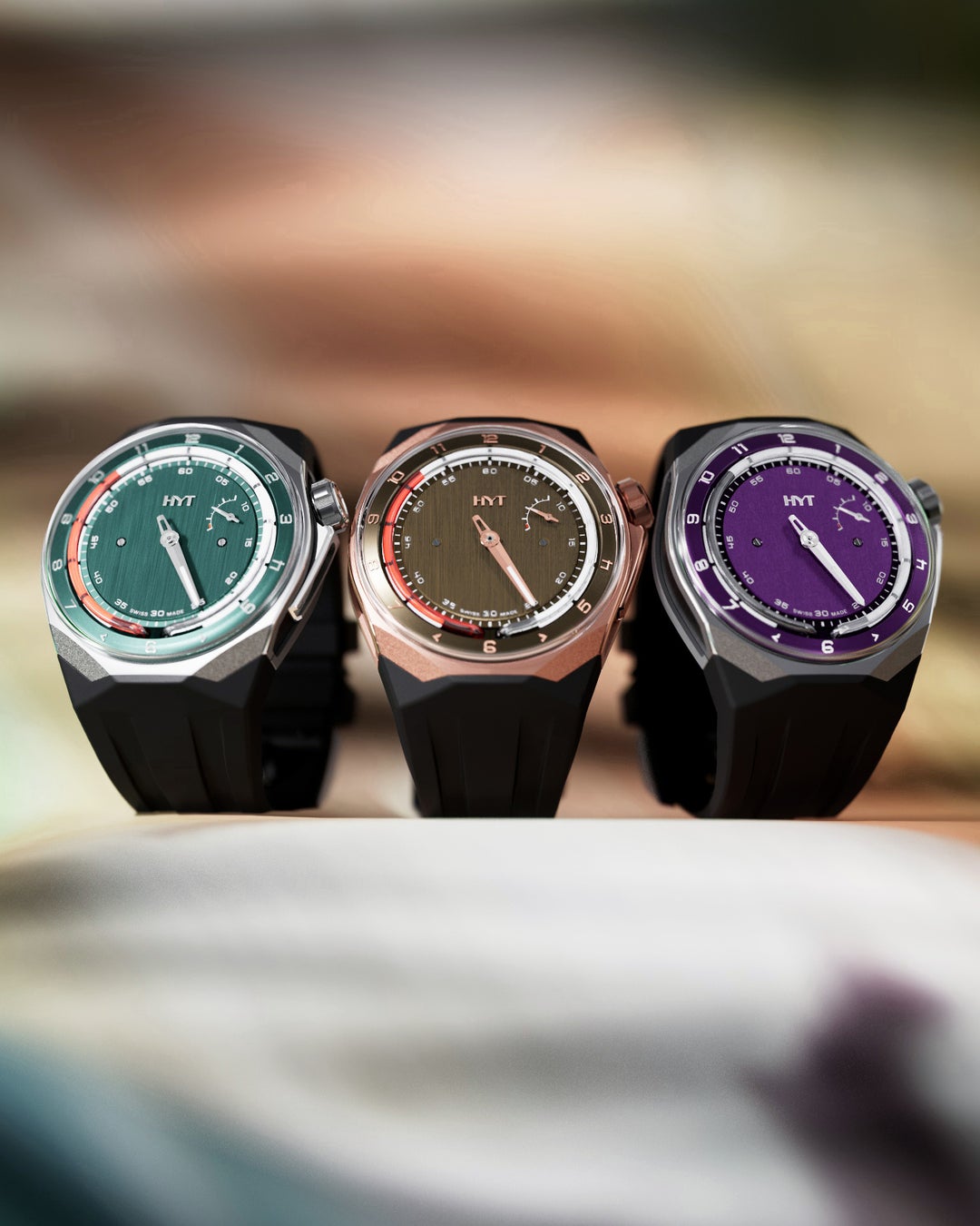 この新たな章を記念して、HYT はパープル、グリーン、チョコレートといったエレガントなカラーをまとい、自然光の戯れをまたとない方法で捉える垂直サテン仕上げの文字盤を備えた、3 色の新しいT1 を発表します。