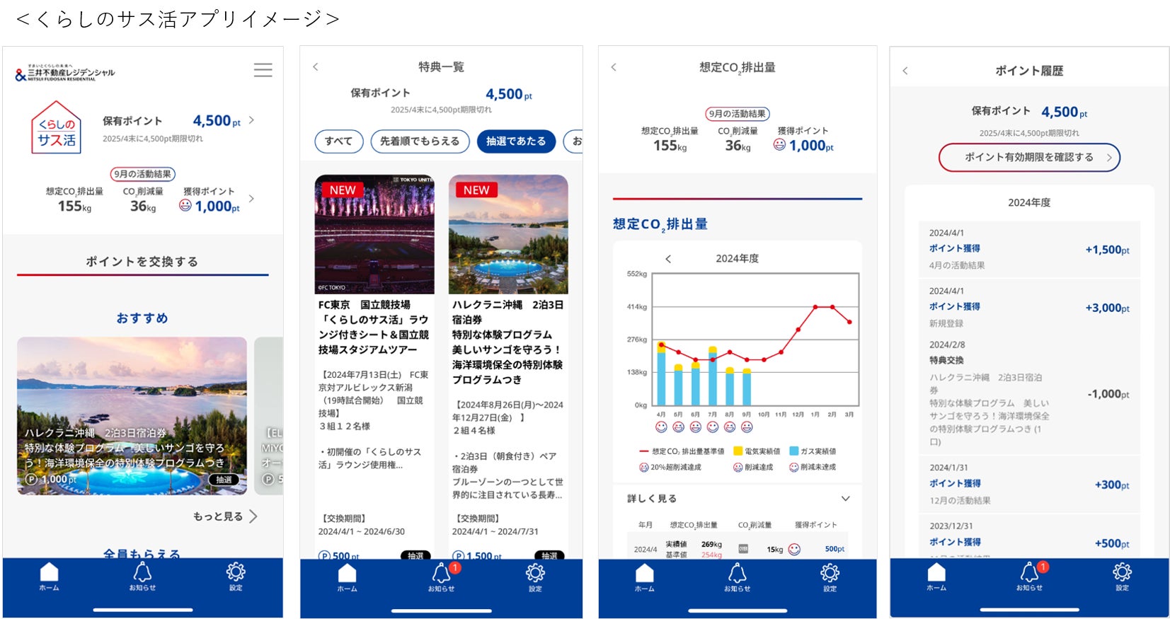 株式会社ファミリーネット・ジャパン(本社:東京都港区、代表取締役:浜西 豊)は、三井不動産レジデンシャル株式会社(本社:東京都中央区、代表取締役社長:嘉村 徹)が提供する「くらしのサス活」アプリを開発し、リリースしたことをお知らせします。本アプリは、日々の電気・ガス使用量をCO2排出量に換算・見える化し、削減量に応じたポイントが付与される脱炭素活動を推進するプラットフォームとなるものです。すでに三井不動産レジデンシャルの首都圏の新築分譲マンションにおいて本アプリの導入を開始しており、今後、同社が首都圏で展開する新築分譲物件および過去分譲物件24万世帯に向けて順次提供される予定です。