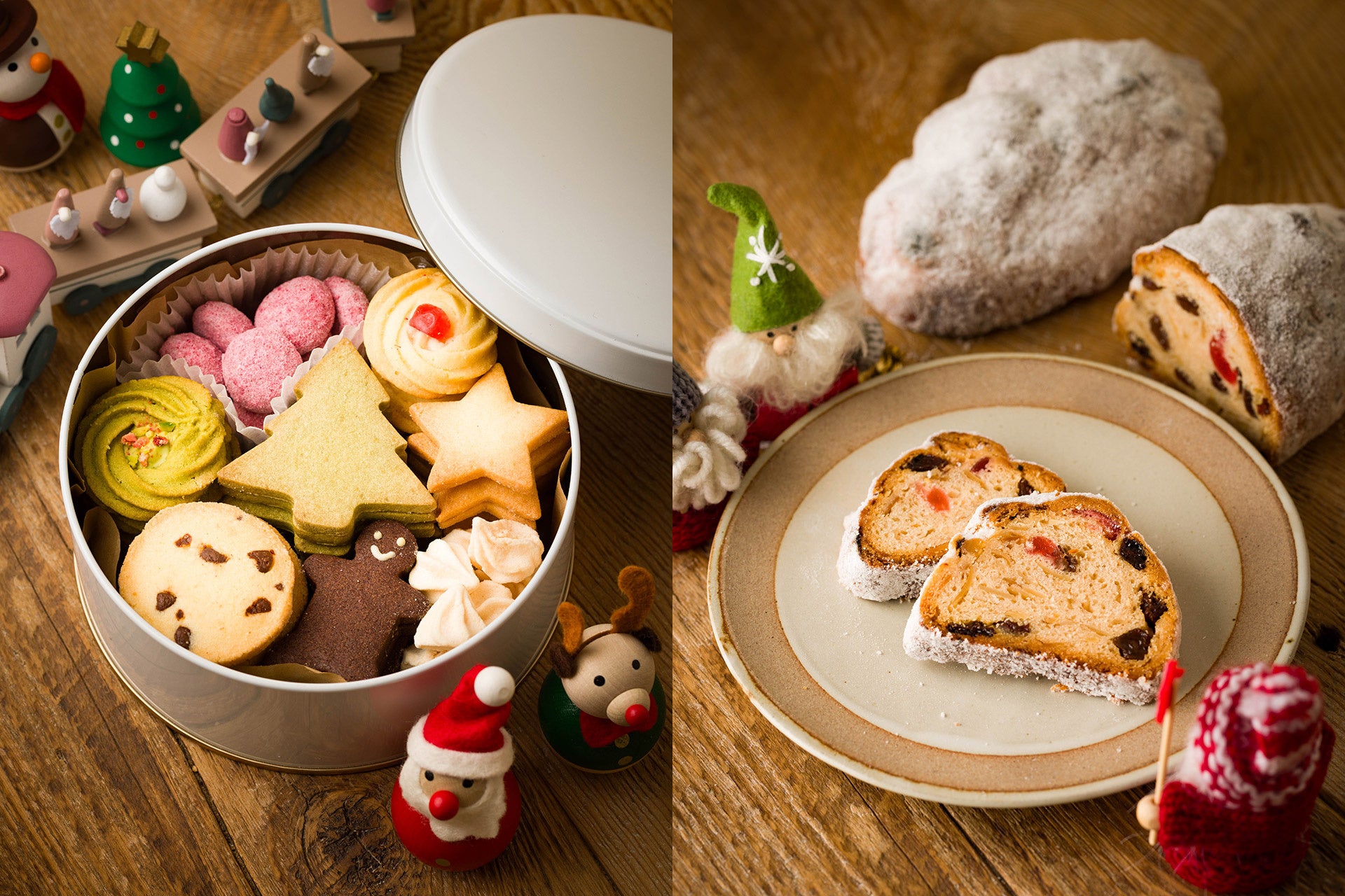 ご家庭のおやつにも贈り物にも向く、特別仕様のクッキー缶とシュトーレンをご用意