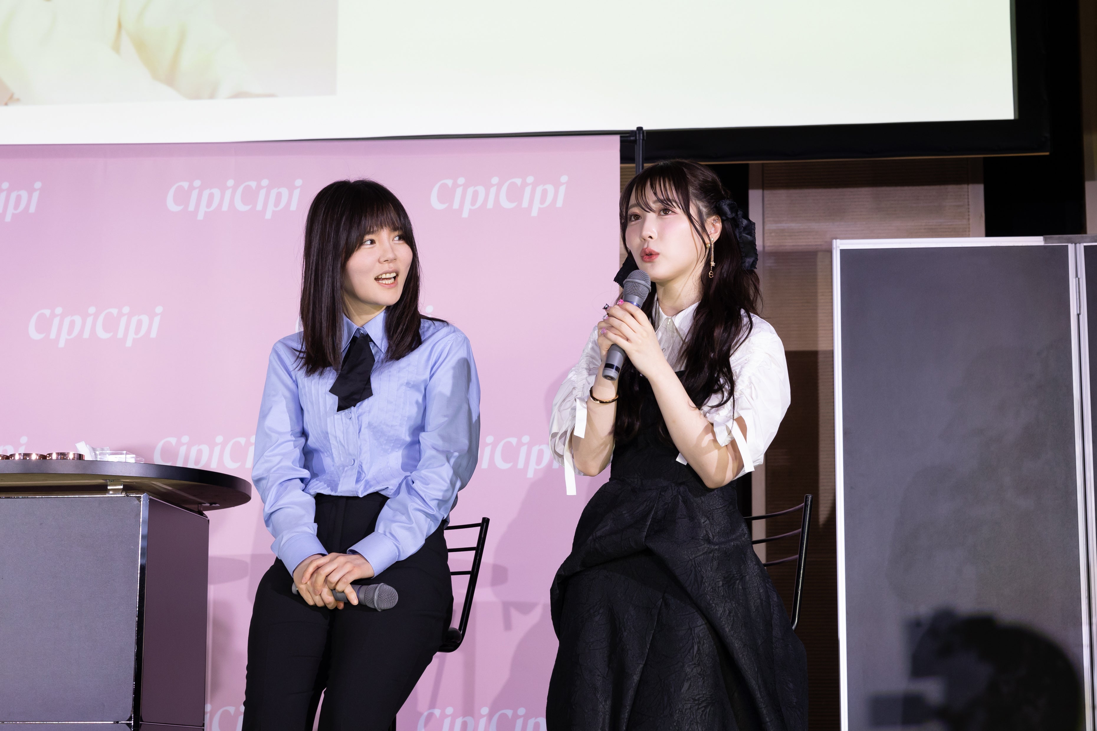 「CipiCipi」はブランド初となるベースメイクアイテム「CipiCipiフィットスキンクッション」の紹介とメイクショーが行われました。ユーザーから「ベースメイクも欲しい!」という声があり、ふくれな自身が使用することが一番多いクッションファンデーションの商品開発がスタート。