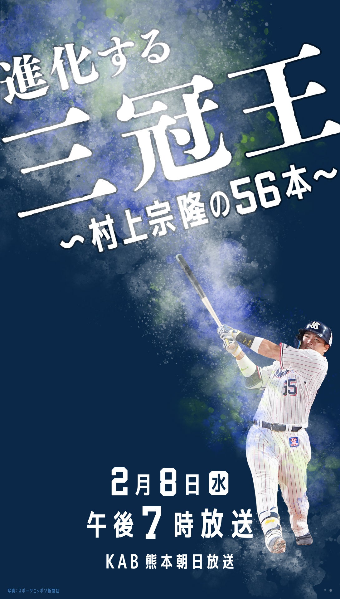 KAB熊本朝日放送「進化する三冠王~村上宗隆の56本~」2月8日(水)午後7時 放送