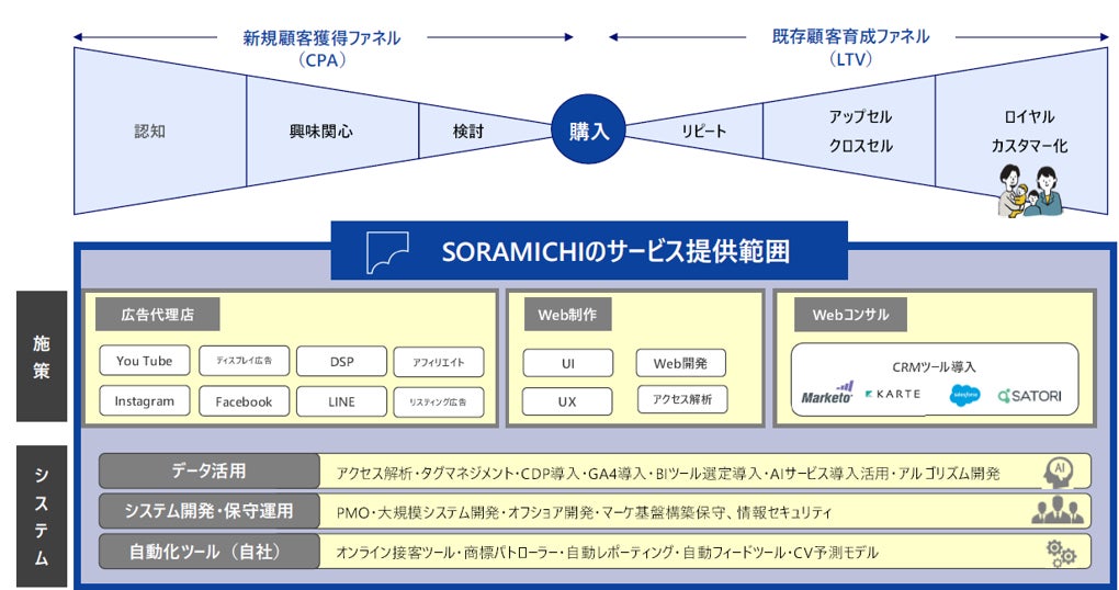 今後もSORAMICHIはオフショアカンパニーとともに、次世代のマーケティングをリードする技術力でマーケティングの自動化と顧客データの深い洞察に基づくカスタマイズされたソリューションを提供し、クライアントの事業成長の加速を支援してまいります。