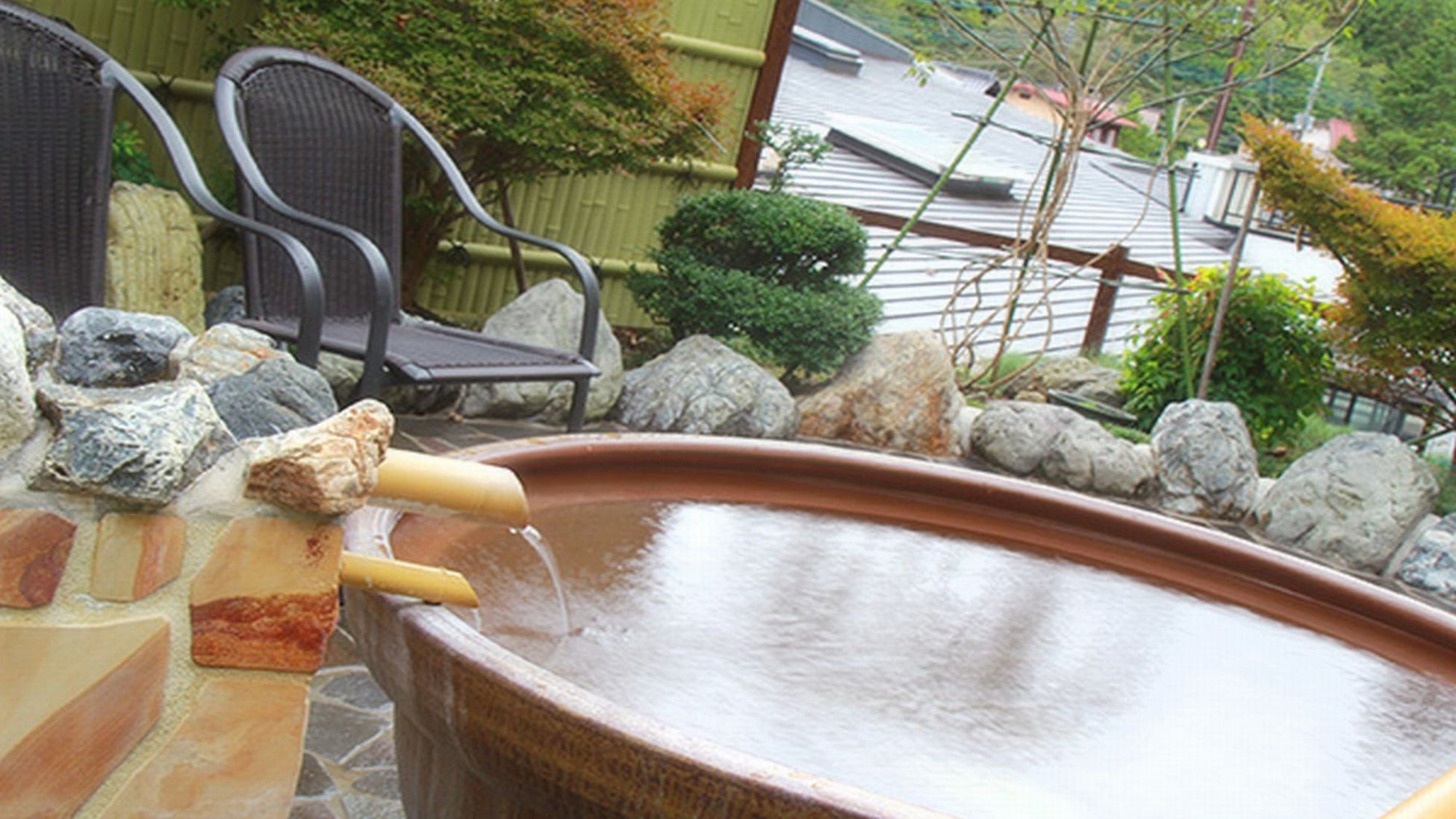 「おやど 湯の季」では、3つの源泉を用い、露天風呂を含む5つのお風呂を源泉かけ流し100%で提供しています。