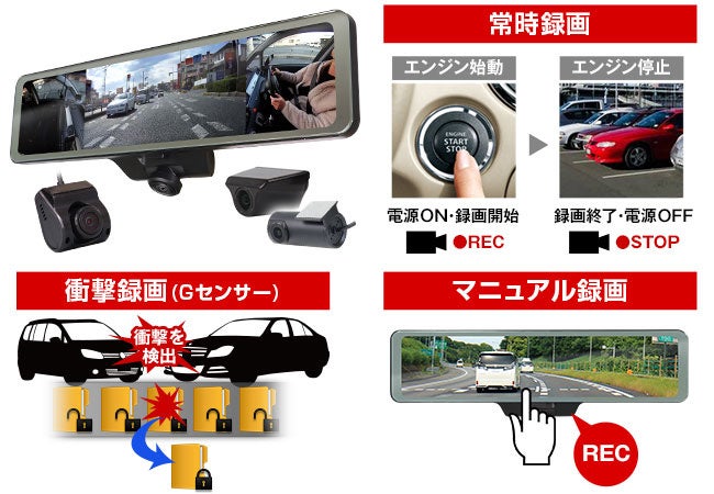 衝撃録画(Gセンサー)…衝撃を検出した場合は自動的に衝撃録画データとして記録