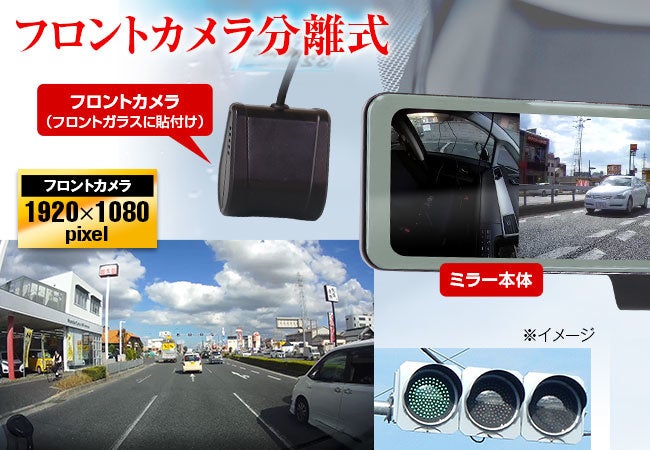 フロントカメラはミラー本体と分離しているので、カメラの向きにミラーの向きが影響を受けません。
