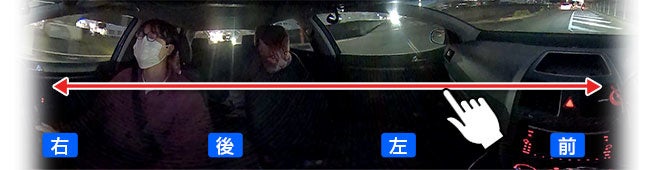 360°カメラ表示部は左右にスライドすると映像が回転します。前後左右の状況がいつでも確認できます。