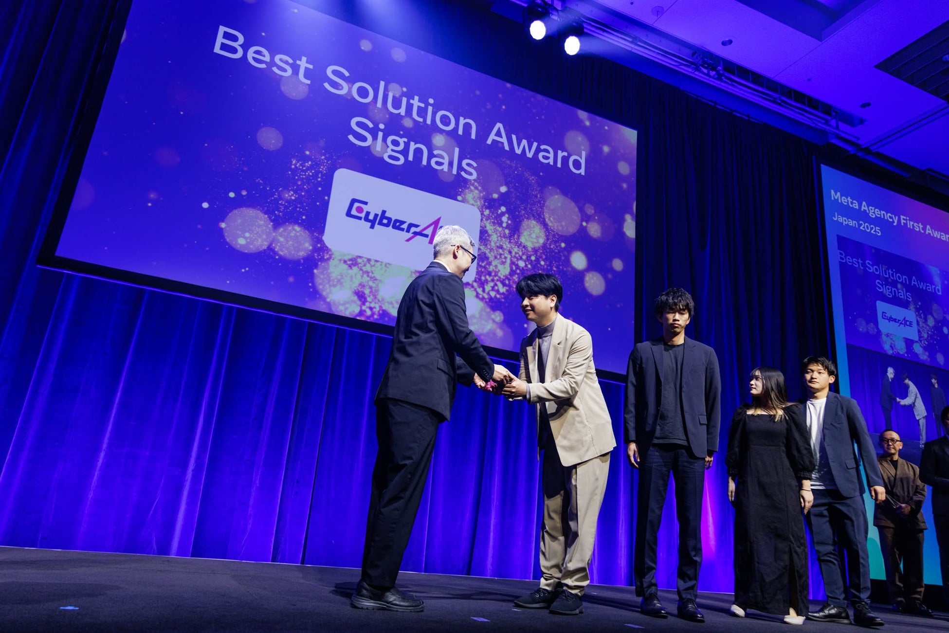 株式会社サイバーエース(本社:東京都渋谷区、代表取締役社長:西島大、以下「当社」)は、2025年11月11日(火)に開催された「Meta Agency First Awards Japan 2025」において、「Best Solution Award – シグナル部門」を受賞いたしましたことをお知らせいたします。