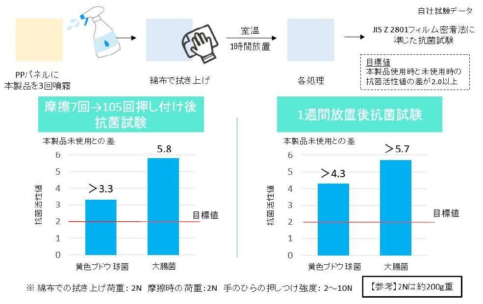 普段のアルコール除菌と同じ対処をするだけで、摩擦に強い抗菌皮膜を形成します。