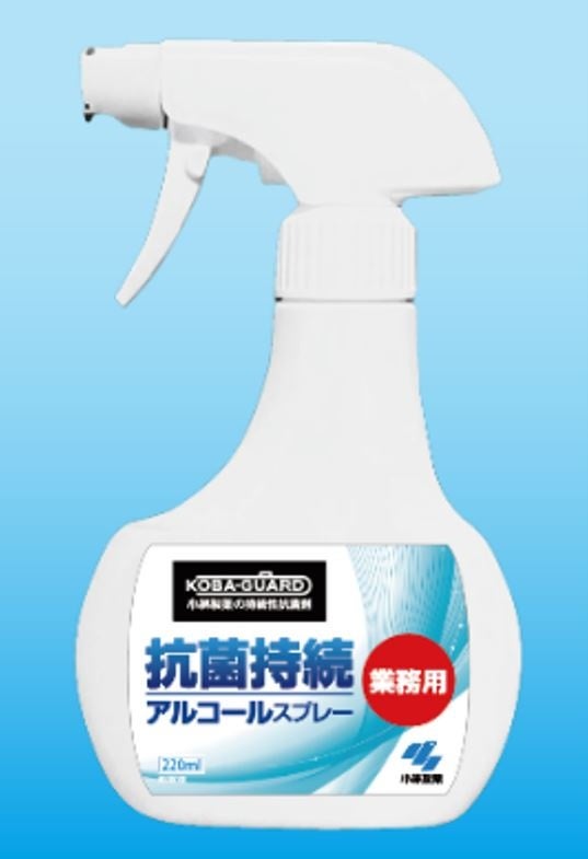 そこで、弊社の持続性抗菌剤「KOBA-GUARD」の技術を活用した衛生対策製品「業務用KOBA-GUARD抗菌持続アルコールスプレー」を開発いたしました。
