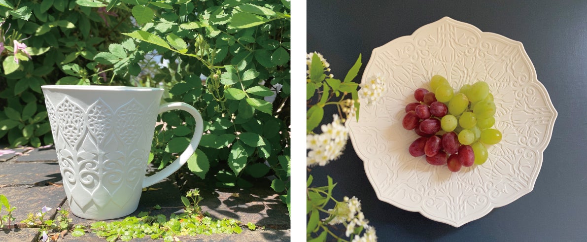 美術家/切り紙作家 矢口さんと2万坪を誇る和多屋別荘を巡り、昔ながらの建具や、有田焼の絵付などを参考に紋様デザインを考え、テーブルウェアを製作します。
