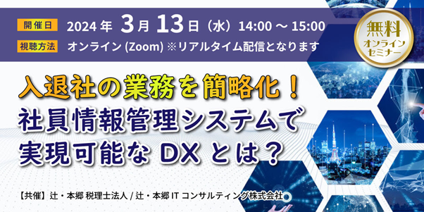3月13日(水)開催 / 入退社の業務を簡略化!社員情報管理システムで実現可能なDXとは?