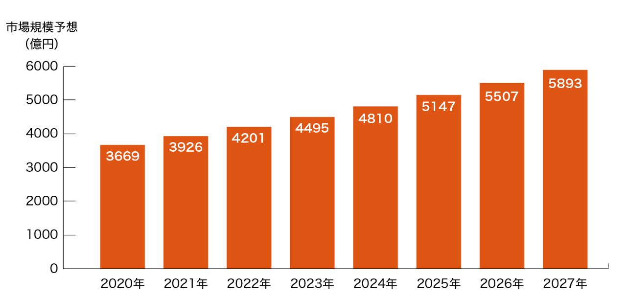 ※:2025年国内のEC市場規模は経済産業省の電子商取引に関する市場調査で17兆1578億と予想され、米国のライブコマースの成長率を参考値とし2027年段階で国内ライブコマース化比率を3.0%として算出
