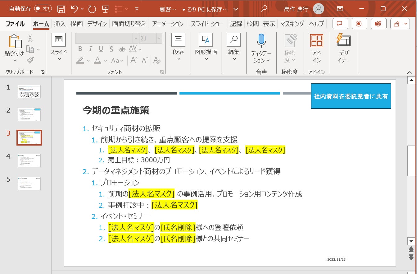Powerpointファイル マスキング画面イメージ
