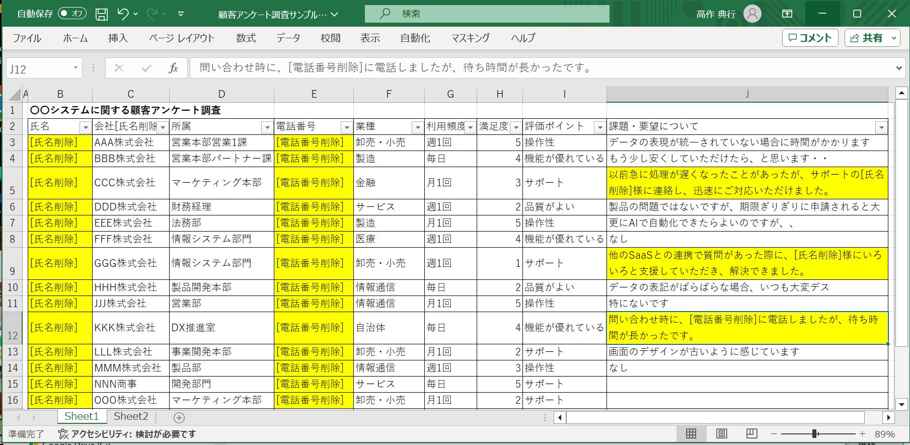 ・マーケティング担当者や調査会社の担当者:回答に含まれる顧客名や顧客担当者名を匿名化し、アンケート結果を活用したい