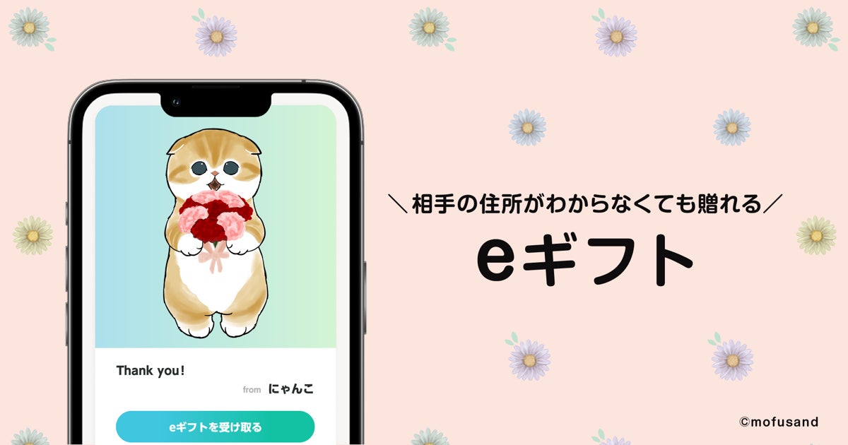 今回、当社の『AnyGift』サービス提供により、人気キャラクター「mofusand」の公式グッズを友達や家族、恋人、住所を知らない相手にもeギフトとして贈ることが可能になります。