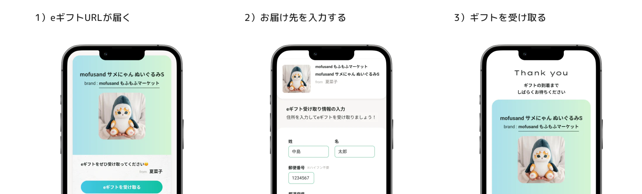 ギフトを受け取る方はeギフトURLから住所を登録いただくと商品が届きます