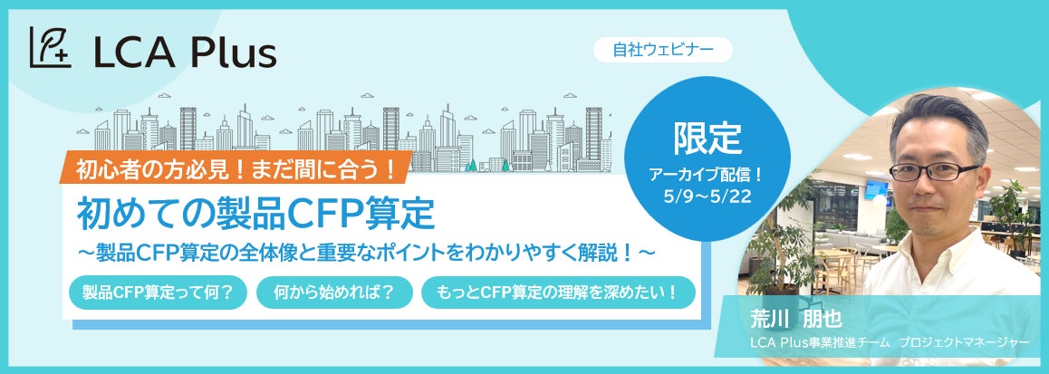 【過去ウェビナーアーカイブ配信のお知らせ】LCA Plus 初心者向けセミナー「初めての製品CFP算定」を期間限定で配信中!