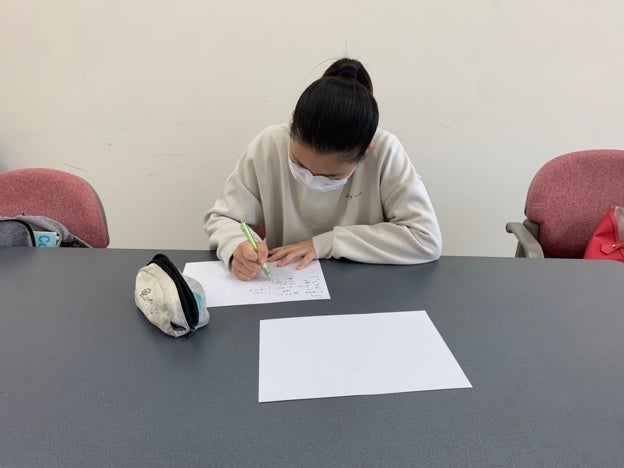 吉林大学(中国)に留学予定の長井真愛さん(総合政策学部2年生)は、「丁雷先生が間違えやすい文法をわかりやすく解説してくれたので、よく理解できた。発音もよくなり、聞き取りができるようなった」と手応えを感じた様子。