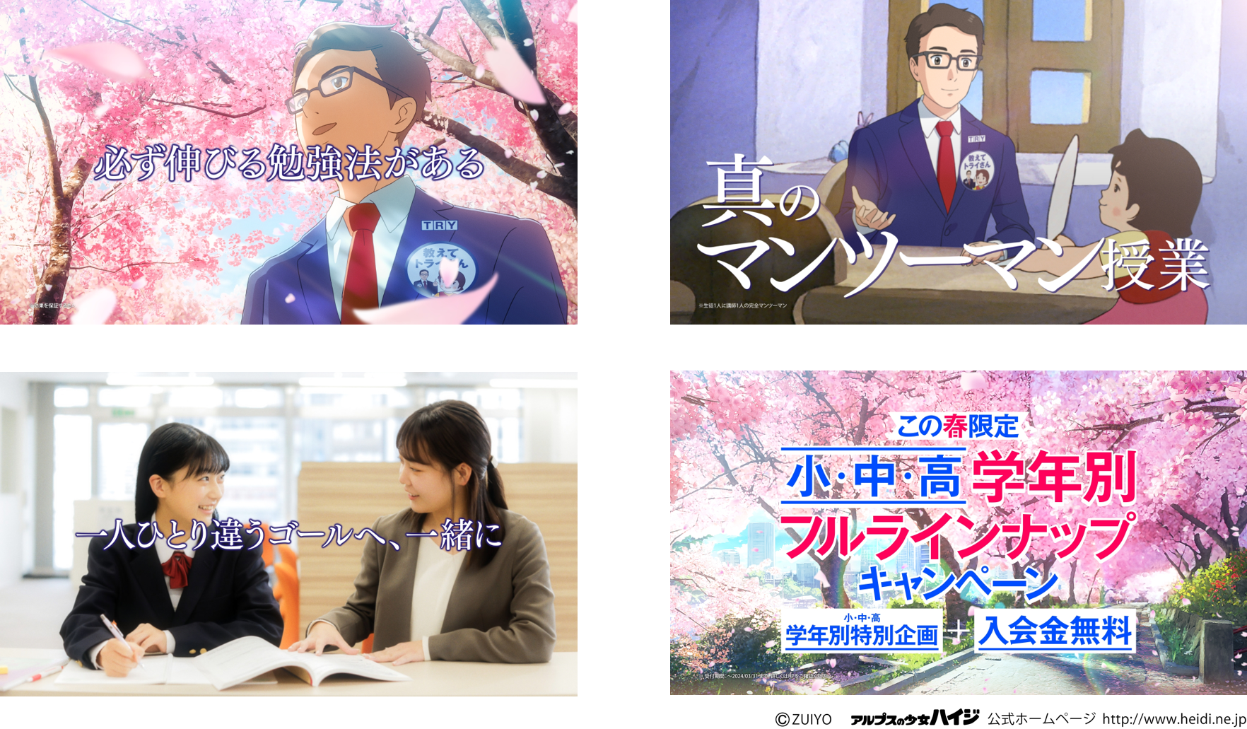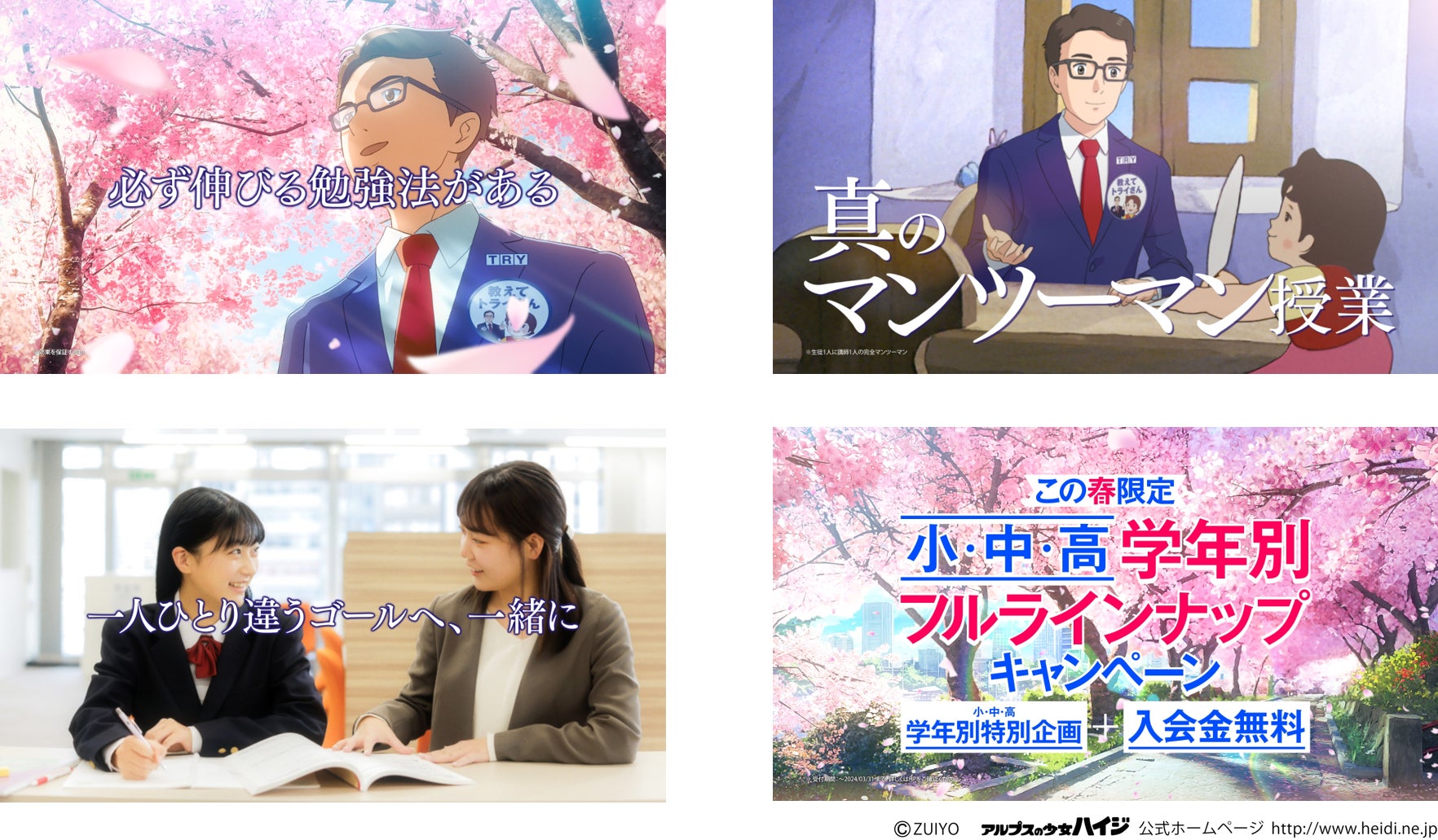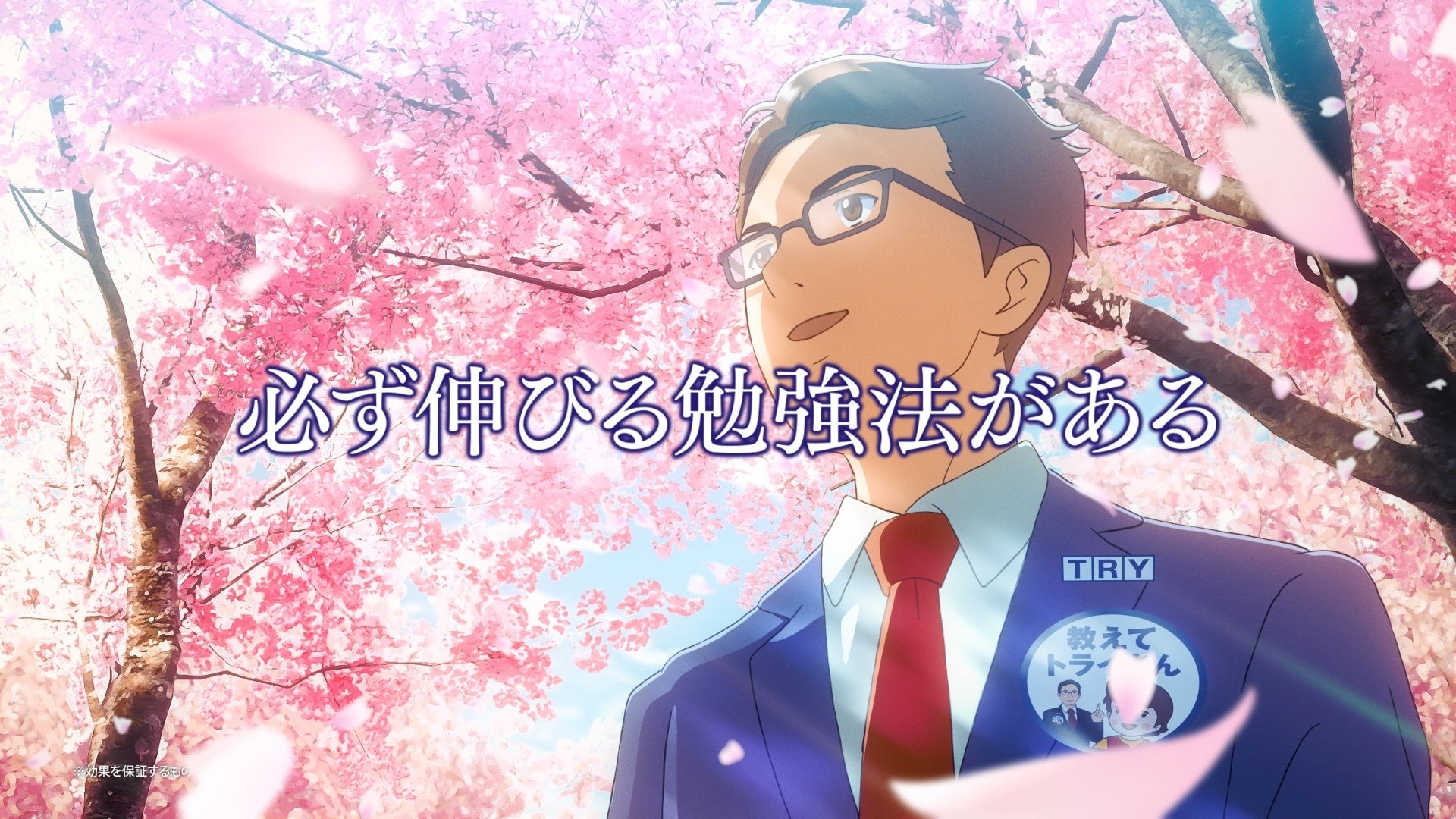本キャンペーンのCMとして2024年2月9日(金)より放送開始した『トライさんの想い』篇では、桜が舞うエモーショナルな情景と高揚感溢れるBGMに乗せて「ハイジ、新学期の準備はどうだい?」「クララ、君は一人じゃない」とトライさんが優しく語りかける場面が印象的です。「必ず伸びる勉強法がある」と力強いメッセージを届け、新学期への不安や悩みを頑張る勇気へと変える春の応援CMとなっております。ぜひご覧ください。