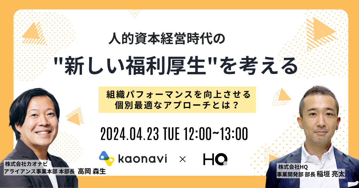 HQ、株式会社カオナビとの共催セミナー「人的資本経営時代の"新しい福利厚生"を考える」を4/23に開催