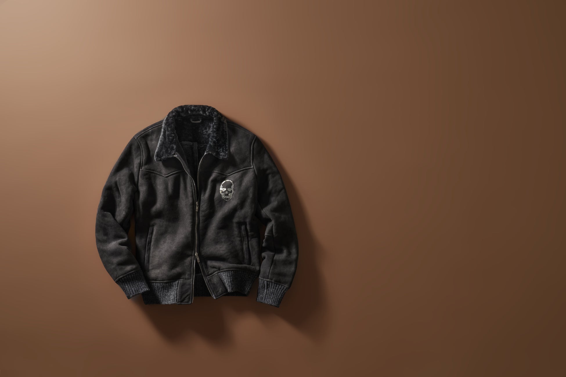GIORGIO BRATOの上質なシープスキンの非常に柔らかい風合いと高い保温性が特徴的なムートンブルゾンの胸元にlucien pellat-finetのシグニチャーであるスカルのモチーフをクリスタルで配置し、 lucien pellat-finetらしい遊び心をプラスしています。