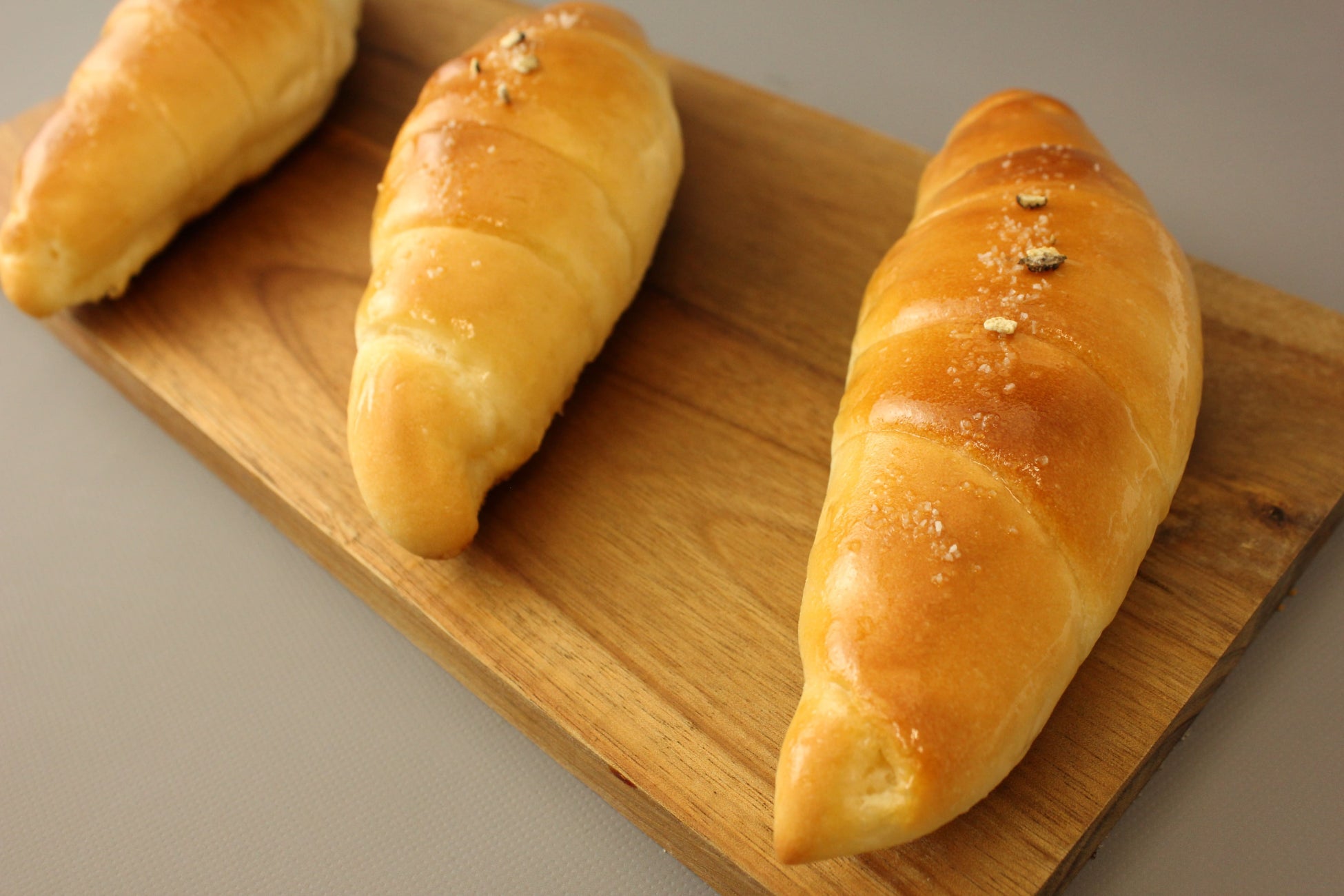 塩パンに、トリュフオイルと黒トリュフ塩をトッピングして焼き上げました。