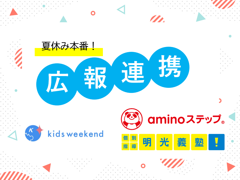 【企業間シナジー事例】キッズウィークエンド、味の素社『aminoステップ®』、明光義塾レーベルとそれぞれ夏休み期間を利用した広報展開の連携施策を推進!相互送客とユーザーへの体験価値を提供