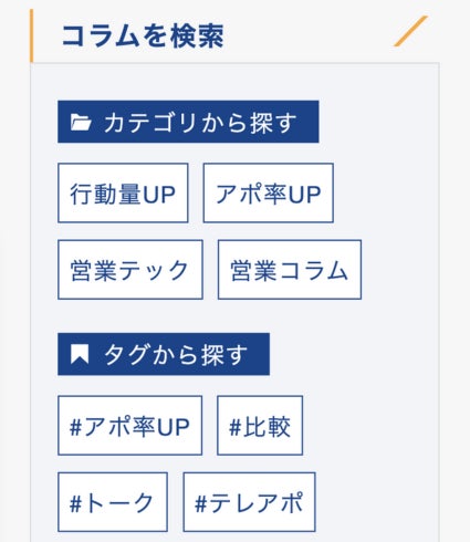 検索欄を新設し、「カテゴリから探す」「タグから探す」ことが可能となりました。