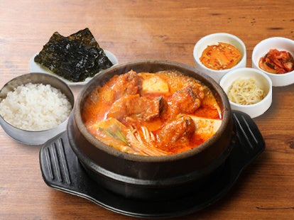 ゴロっとした広島県産牡蠣が4つ。牡蠣の旨みたっぷりのグツグツ煮込んだスンドゥブは寒い冬にぴったり。ひとくち食べれば病みつきになること間違いなし!ぜひ定食セットでお召し上がりください。