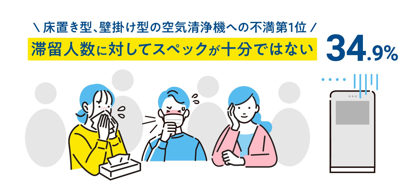 ■ 床置き型、壁掛け型の空気清浄機に関して、 不満なことの第一位は「滞留人数に対してスペックが十分ではない」!