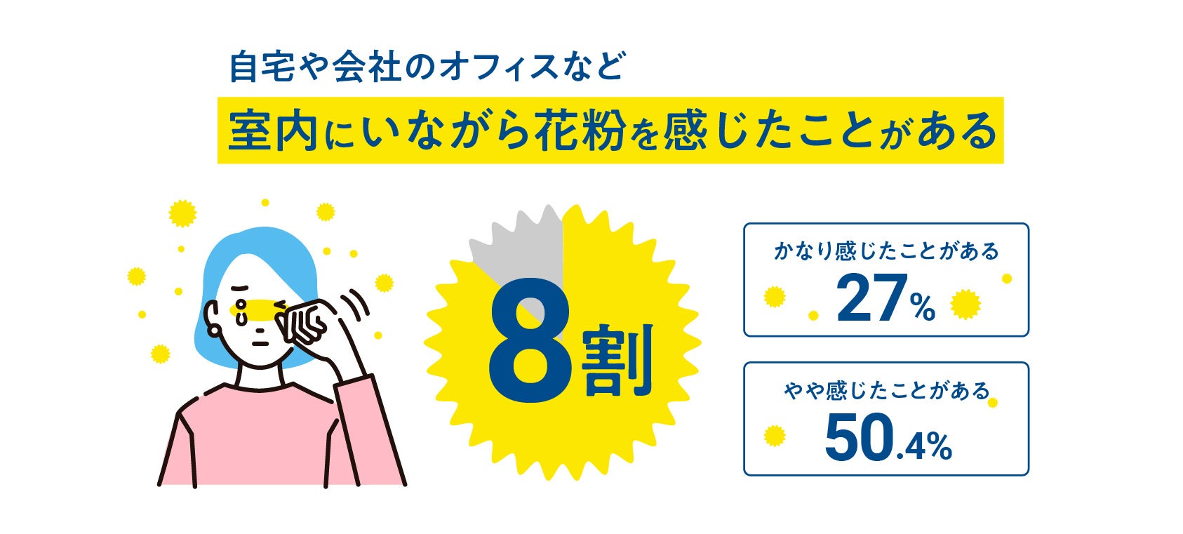 ■ 花粉症について、自宅やオフィスなど室内で花粉を感じたことがある人は8割。