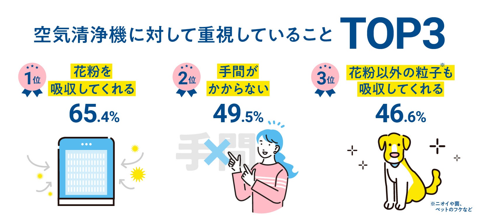 3位「花粉以外の粒子(においや菌、ペットのフケなど)も吸収してくれる」