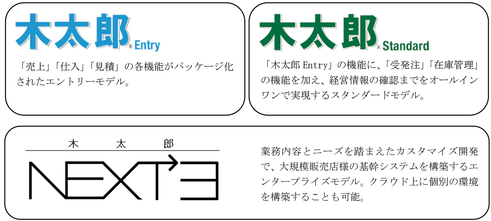 ナイスコンピュータシステム株式会社(本社:横浜市鶴見区、社長:清水 利浩)はこのほど、建築資材の経営管理システム「木太郎Ⓡ」シリーズにおいて、SaaS※型クラウドサービス「木太郎Ⓡ6」を新たに開発、本格的な販売を開始しました。同シリーズは、木材・建材の販売店様におけるあらゆる業務を連動させることで業務効率の向上を実現するもので、約450万点に及ぶ「商品マスタデータ」の最新版を公開しているほか、ナイス㈱が提供する建材・住宅設備機器・木材のオンライン発注システム「ナイスアドバン」をはじめとする、他のプラットフォームとの連携も可能です。商品シリーズとして、「売上」「仕入」「見積」などの基本機能をパッケージ化した「木太郎ⓇEntry」、これに加えて「受発注」や「在庫管理」も可能な「木太郎ⓇStandard」、大規模販売店様向けの「木太郎ⓇNEXT3」などを提供しています。