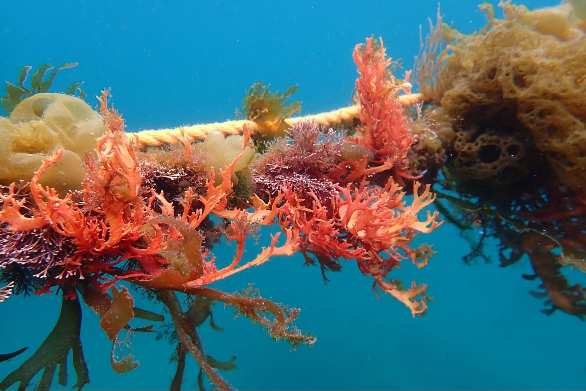 海藻が形成する藻場は“海のゆりかご”と言われるように、魚や貝などの生き物たちの命を育む機能があり、海の生態系のバランスを保っています。しかし海水温が年々上昇していることで、海藻を食べるアイゴなどの魚やウニの活性が高い時期が長期化し、その結果、全国各地で食害が大きく発生し、藻場が激減しています。こうした状況の中で私達ができることの一つが、海面で海藻を栽培することでした。海水温が下がって食害を受けない時期や海域を特定し、そこに適した海藻を栽培すれば、一時期だけでも海に海藻がある状態をつくることができます。どうしても食害を受けてしまう状況では、カゴなどを使って栽培することが可能です。これにより今まで活用されていなかった海域に海藻がある状態を長い期間つくっていくことができ、海の生態系を豊かに育むことができると考えています。