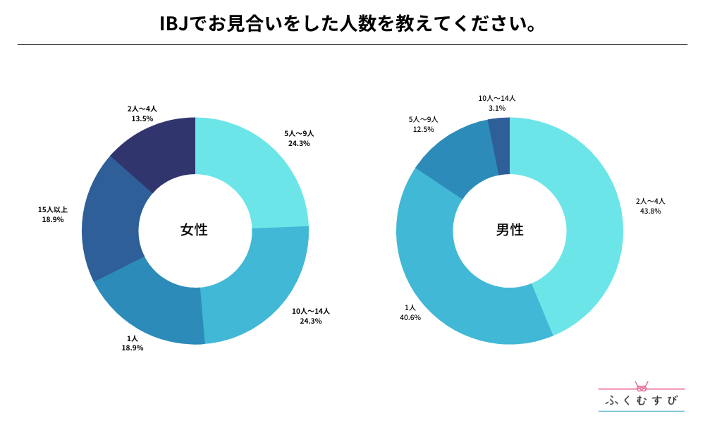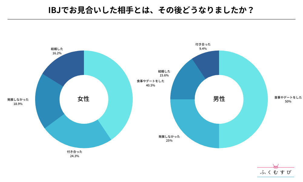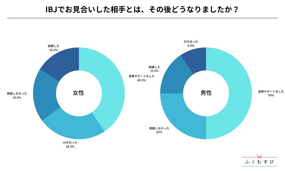 ・IBJで結婚できた割合は、男性が15.6%、女性が16.2%となりました。