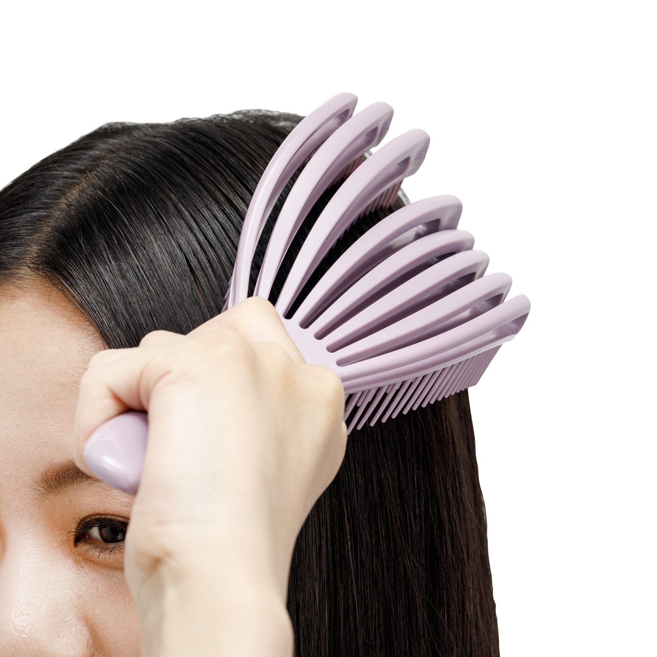 なだらかにカーブしたワイドなブラシ面が、頭皮を包み込むようにフィット。