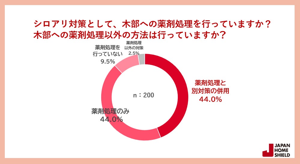 シロアリ対策は木部薬剤が9割弱、そのうち別対策との併用は半数