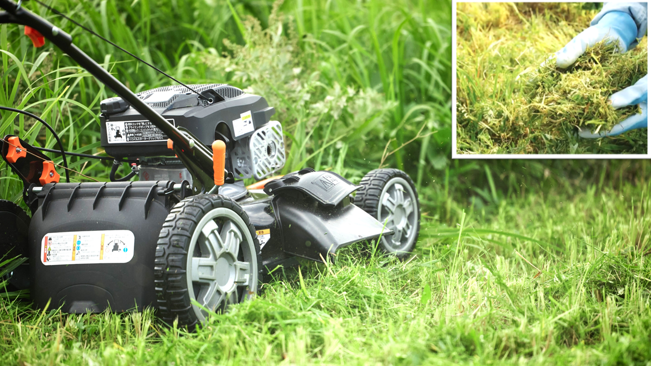 刈った草はサイドもしくはリアからの排出か、マㇽチング(*4)が可能です。刈った草は粉砕されるので、そのまま放置しても土に還りやすく、刈った草処理の手間が省けます。
