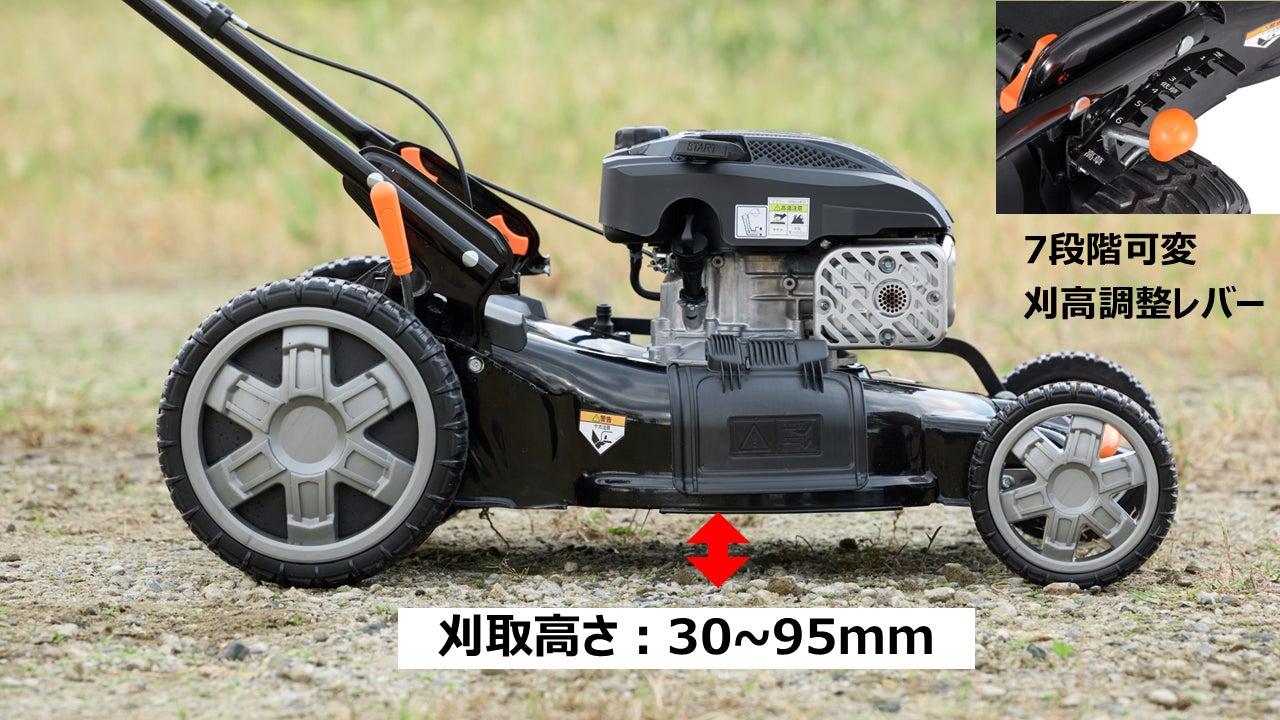 レバーを切り替えるだけで刈高を30~90cmまで7段階に調整可能。