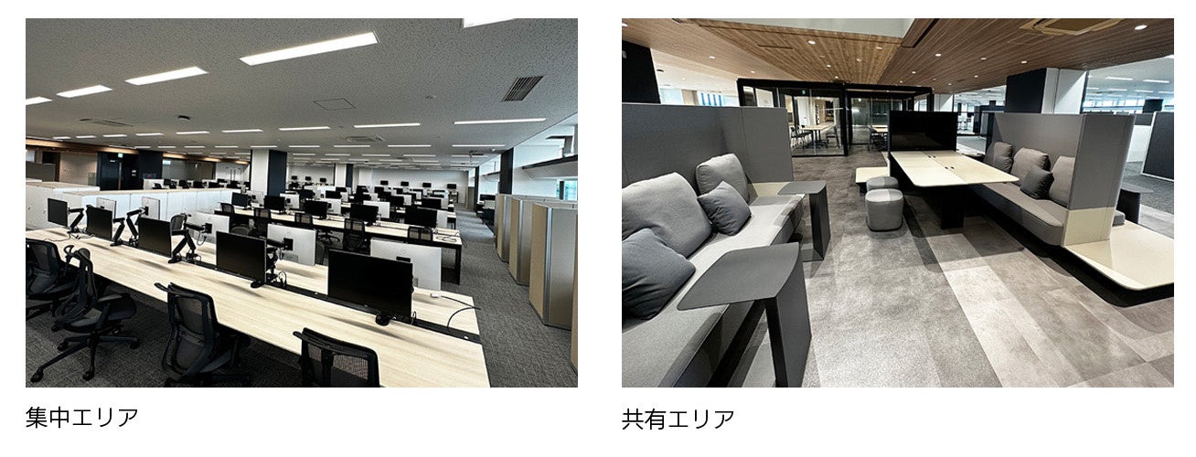 新社屋では従業員が自由に働く場所を選べるように、「集中エリア」、「共有エリア」、「交流エリア」、「創造エリア」の4エリアに分け、アイディアの創出やコミュニケーションの活性化を手助けしています。また、リモート会議に適した個室ブース等も備え、利用用途に合わせ多様な働き方を推進します。さらにトレーニングルームやシャワールームも完備し、従業員の健康的なワークライフを充実させるサポートをします。