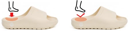 土踏まず部分がしっかりとフットベッドに密着していると、とても歩きやすく、疲れにくいです。ただ土踏まずがない人だと逆に当たりが強く、痛くなってしまいます。