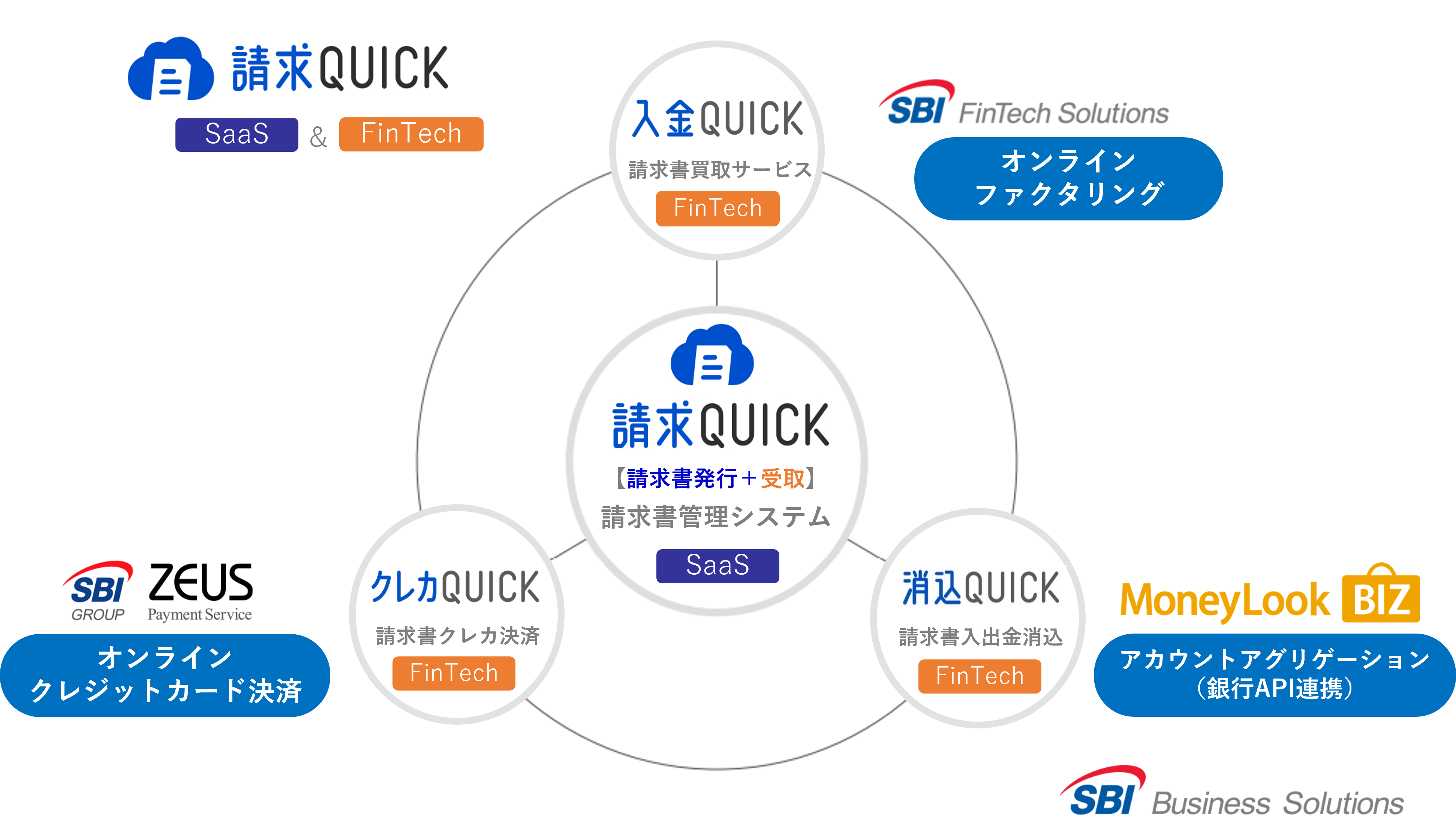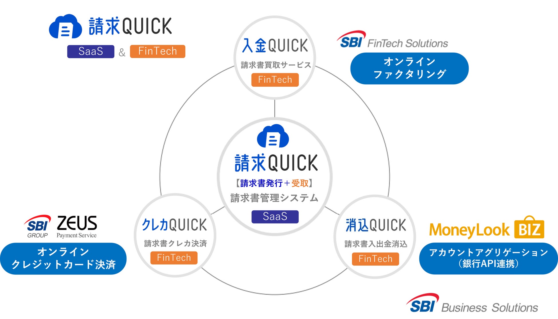 < SaaS & FinTechで中小企業に安心と付加価値を提供する「請求QUICK」の概要図 >
