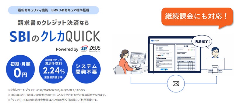 ゼウス、クラウド型請求書管理システム「請求QUICK」のクレジットカード決済「クレカQUICK」に継続課金機能を提供