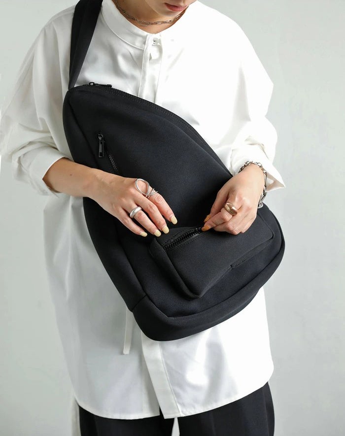 「マシュマロバッグ」は機能性素材としてじわじわと人気が高まっているウェットスーツ素材から生まれた、スポーティーで機能的なバッグ。