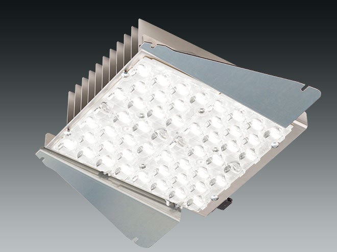 連続照明用と交差点照明用(受注生産品)の2種類、明るさは3種類「水銀ランプ250W・高圧ナトリウムランプ110W相当」/「水銀ランプ300W・高圧ナトリウムランプ180W相当」/「水銀ランプ400W・高圧ナトリウムランプ220W相当」です。
