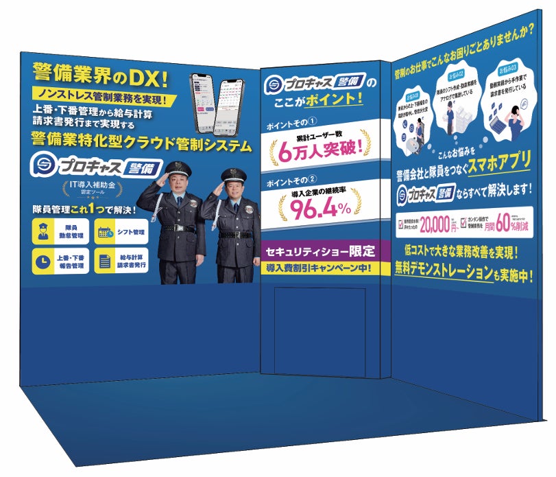 株式会社PROCANは警備業界に特化した、管制システム「プロキャス警備」を運営しています。今回の「SECURITY SHOW2025」では、御社の課題感に併せ、事例なども交えながらご紹介を行います。隊員の勤怠管理、シフト管理などにお悩みの方は、ぜひ弊社ブースへご来場ください。イメージキャラクターであるダイアンのお二人が印刷されたオリジナル卓上カレンダーをプレゼントさせていただきます。