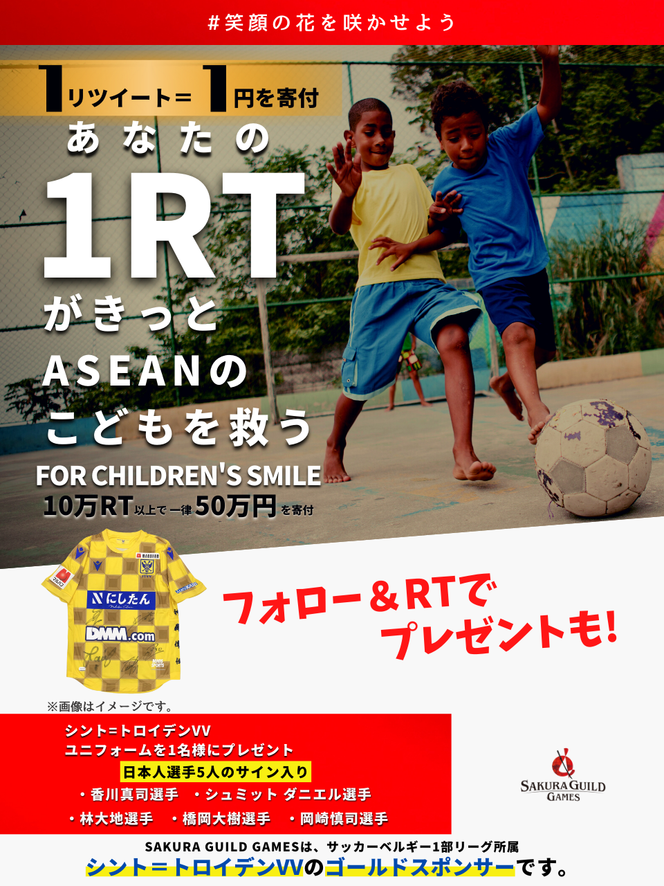 「世界に人々の笑顔を咲かせる」の理念のもと、X-Fi事業、ブロックチェーンゲームギルド事業を展開するSAKURA UNITED PLATFORM PTE.LTD.(CEO:指田仁、以下SUP)は、東南アジア諸国から参画するメンバーが中心のコミュニティ「SAKURA GUILD GAMES」主導で、貧困が深刻なASEAN地域の子どもたちへの貢献を目的としたチャリティ企画を開催します。当企画はサッカーベルギー1部リーグ所属のシント=トロイデンVVとのスポンサーシップ契約締結の際に発表した「より多くの人々の笑顔と夢、希望の実現に向けた機会創り」という方針に則り、その一環として当企画を実施します。