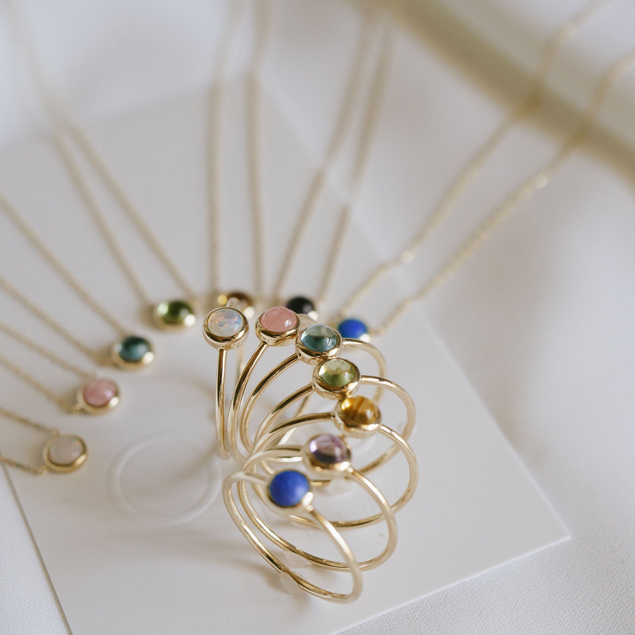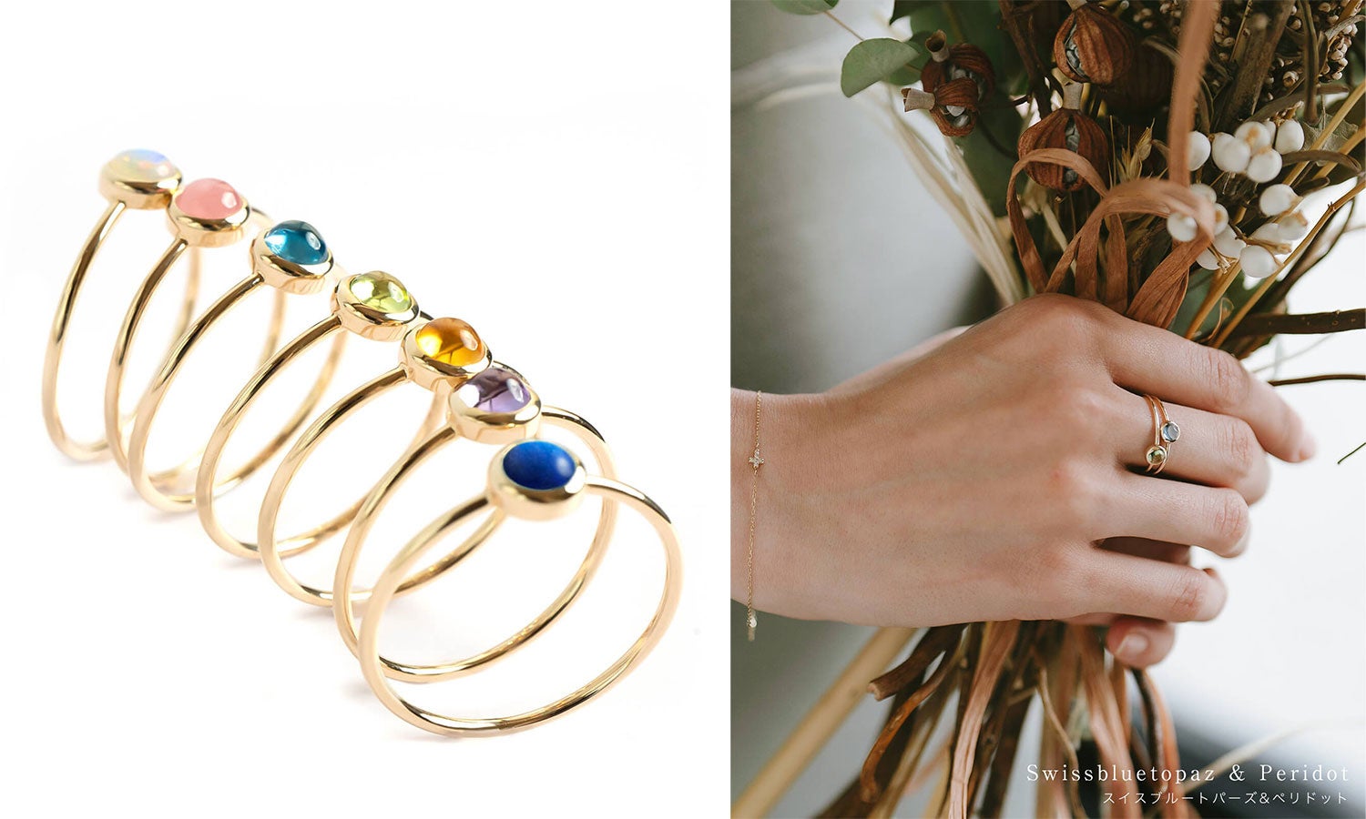 一粒天然石ジュエリー「 LUPAUS -ルパウ- 」は、オパールやペリドット、アメシストなどのカラーストーンを用いたリング・ネックレス。