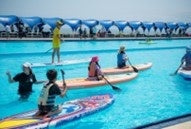 当日は地元の特別支援学校の生徒の皆さまにもSUPを体験いただきます。海のような予測不可能な波や潮流がなく安全な環境で体験いただけます。